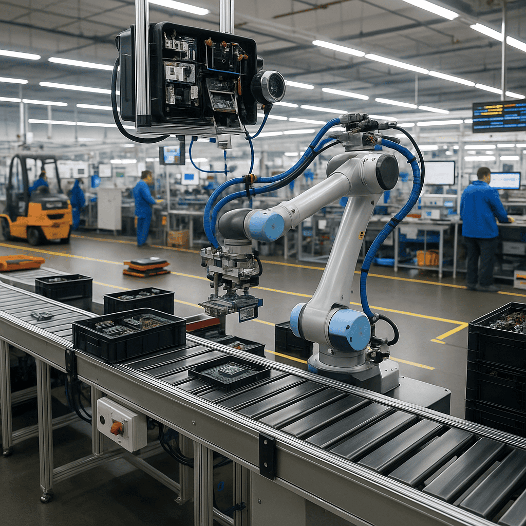 Estos robots mueven productos con precisión milimétrica y a gran velocidad, reduciendo errores y aumentando la capacidad de producción.