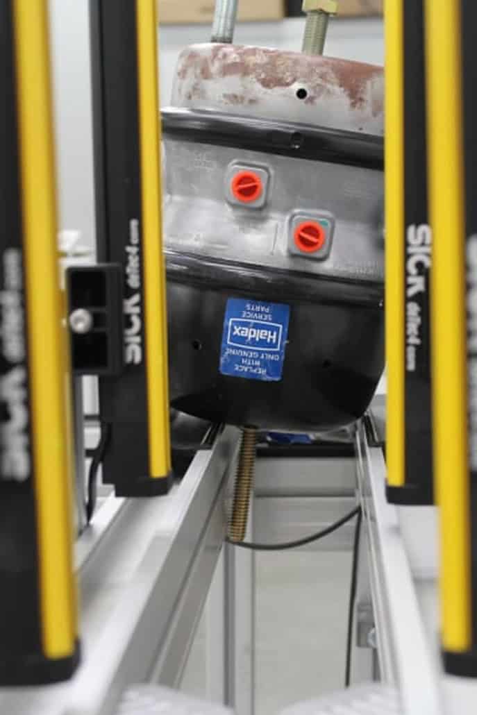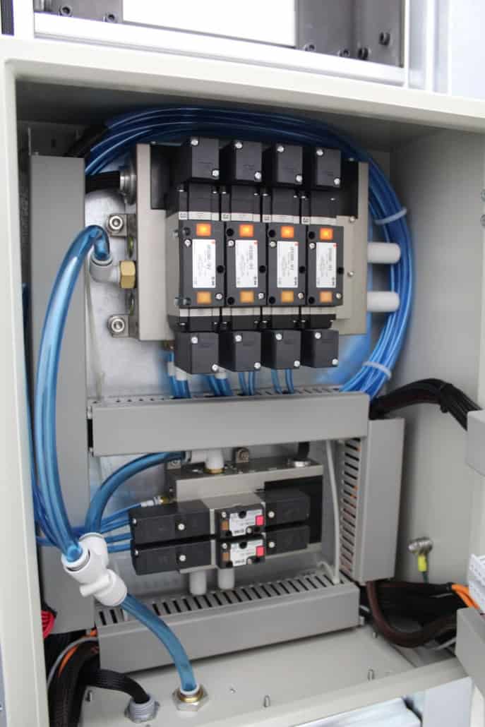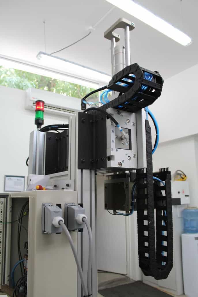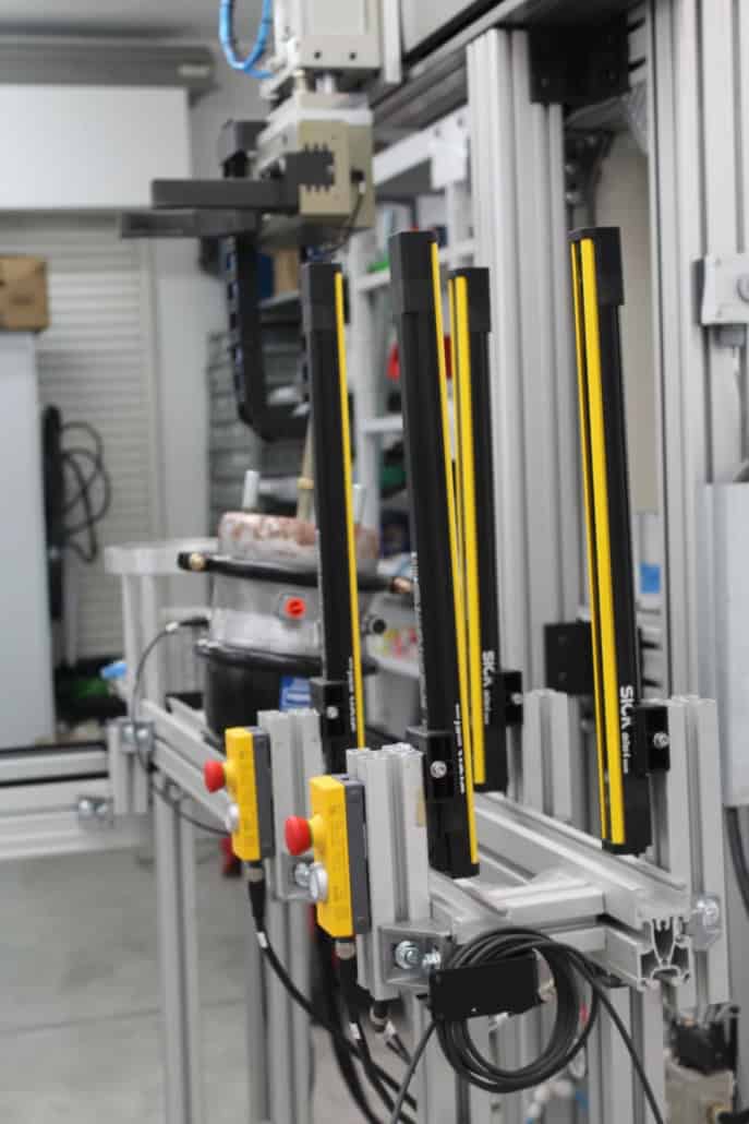 Desarrollo de cabina para marcadora laser KEYENCE. La estructura cuenta con fixture par la alineación entre pieza y marcadora laser, gabinete eléctrico para el control de la cabina, elementos de seguridad para el manejo del operador y sistema de empuje para acomodo de fixture.